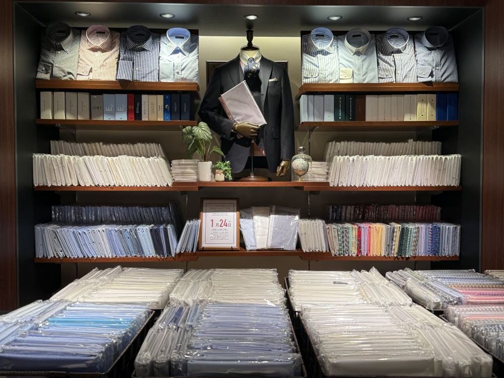今の時期にご注文頂くと出来上がりは3月末ぐらいになります。春夏の準備としてはそろそろ次に作るスーツのことを考え始めてもいい時期に入っております。店頭でもスタッフが春夏に作るスーツの生地を悩んでいます。