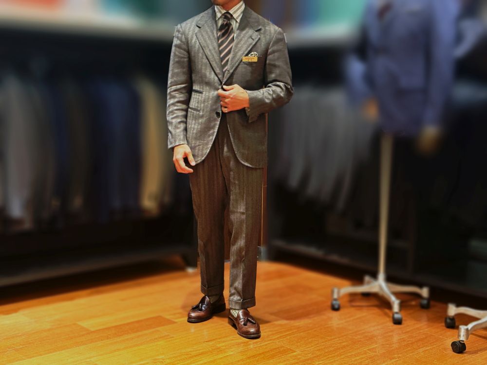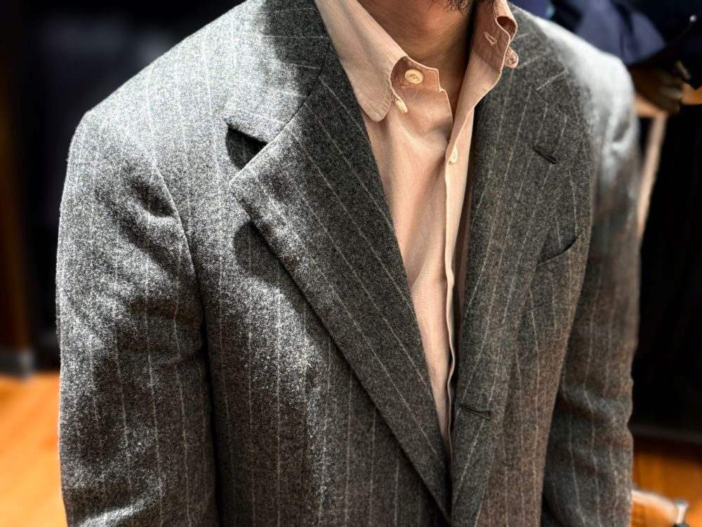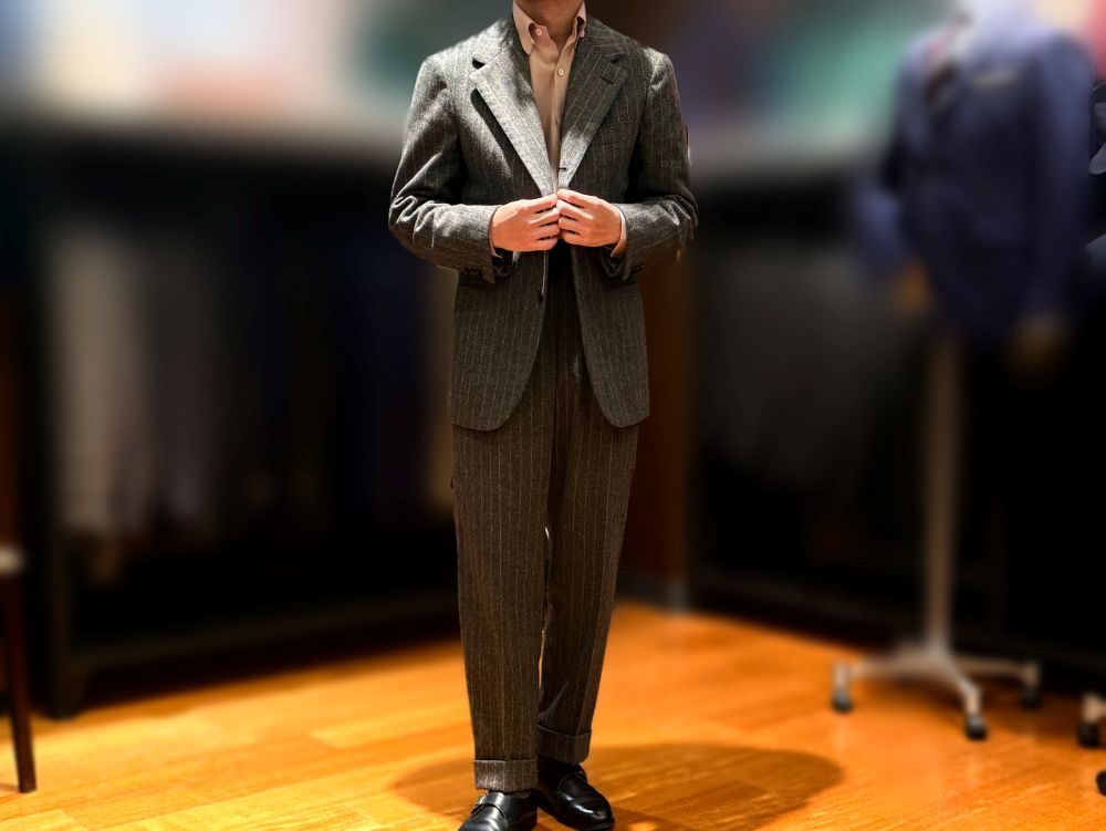 続いては、個人的にフランネル生地と言えばといった、印象のあるスーツです。