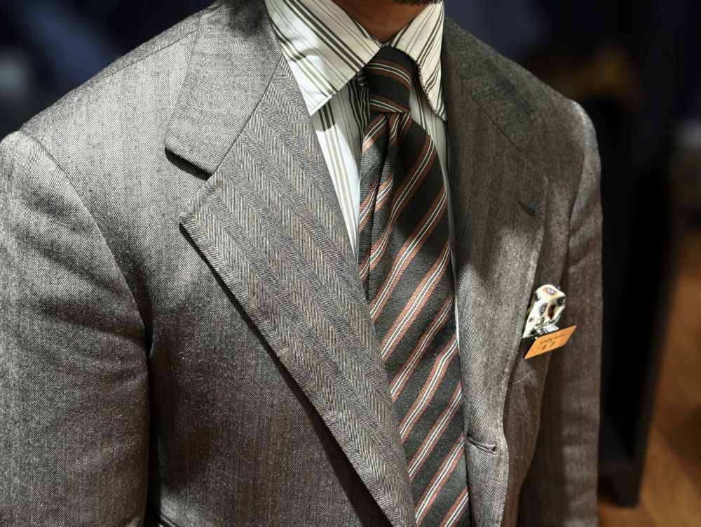 この生地と言えば、白シャツに黒やグレーのネクタイが定番かと思いますが