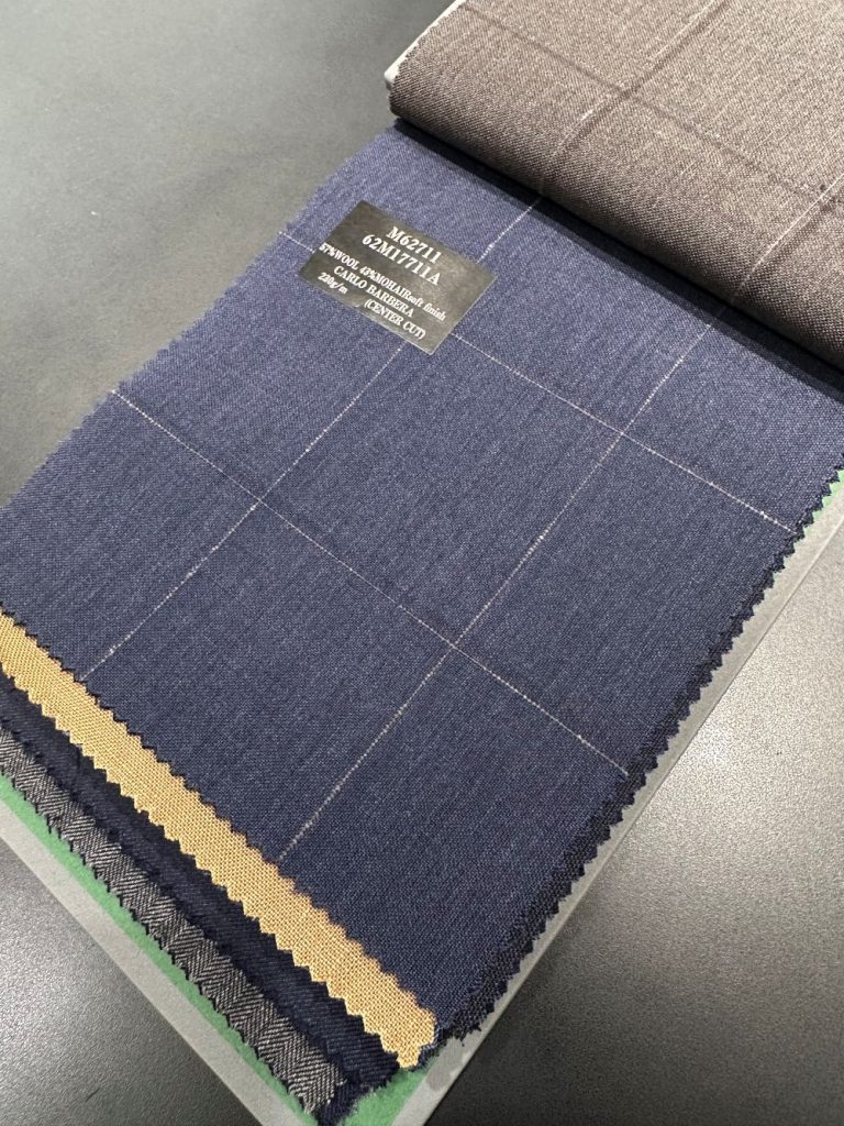 今回のサンプルは、世界中に根強いファンを持つカルロ・バルベラ(CARLO BARBERA)で別注を行った特別な生地で仕立てたものです。
