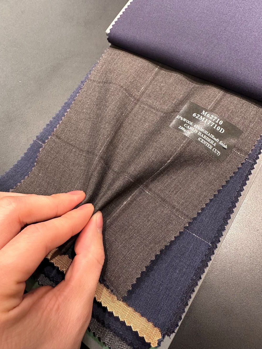 麻布テーラーでは、もう少し柔らかいモヘア混をカルロ・バルベラへリクエストしました。