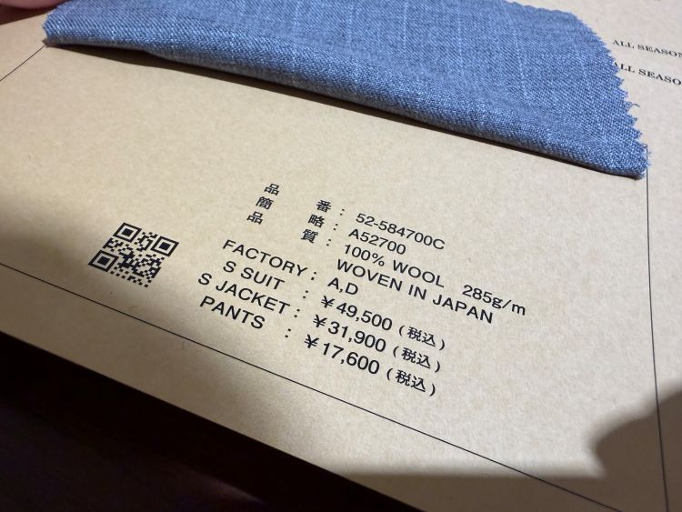 49,500円の生地でもバリエーションとクオリティーにこだわりを持っている麻布テーラー。