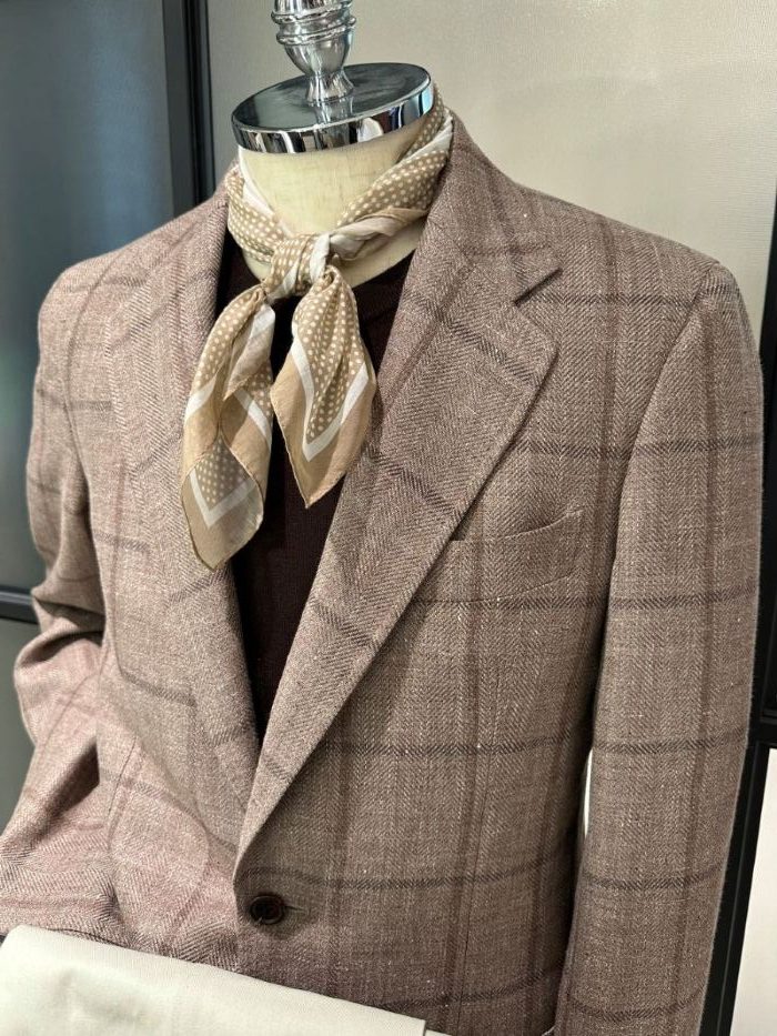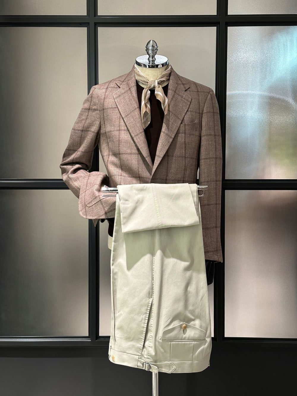 今回はウインドウペーン柄のブラウンジャケットをご紹介させていただきます。