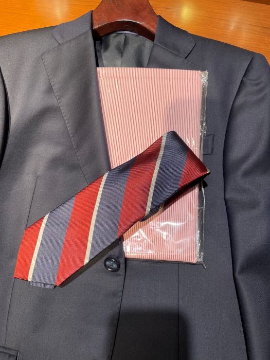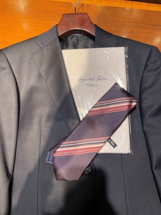 ⇩ネイビーのスーツのサンプルにそれぞれシャツとネクタイを合わせてみました⇩