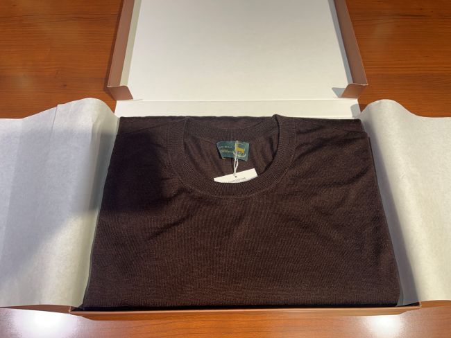 最高級カシミヤの産地・内モンゴル自治区でサステナブルに生産された原料を使用し、深喜毛織×SUNRAISEによる一貫体制で高品質を管理。深喜毛織の糸を使用したカシミヤ・シルク・ウール混の20ゲージハイゲージニットは、滑らかな肌触りと自然な光沢が魅力。素肌でも快適で、ジャケットのインナーにも一枚着にも映える上品な仕上がりです。