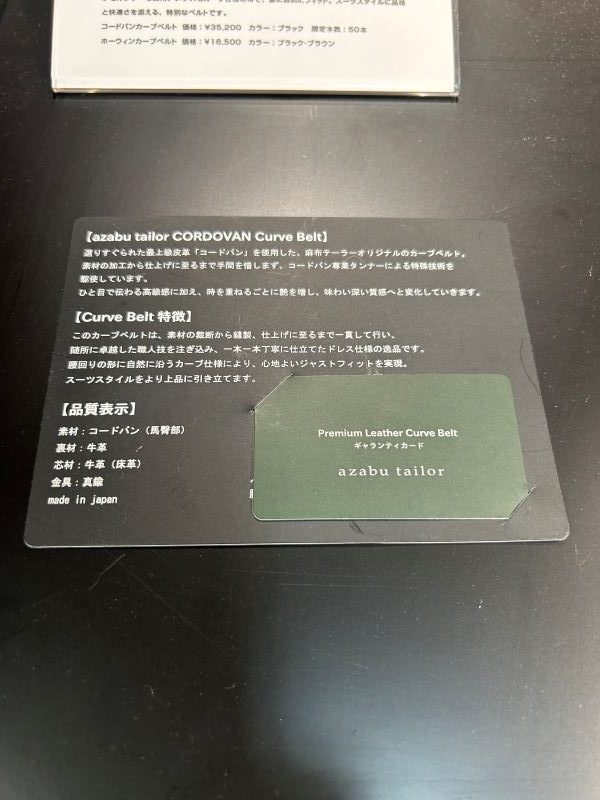 【銀座7th】新作!麻布テーラーオリジナルカーブベルト