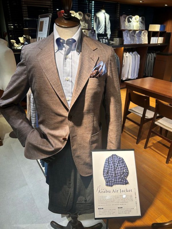 銀座7th店では、エアジャケット仕立てのサンプルをご用意しておりますので、ぜひ参考にご覧下さいませ。