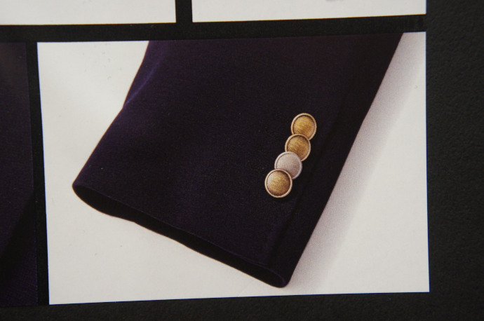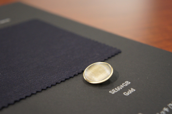左袖口に、ポイントがあります。左袖口第二ボタンだけ、違う色を付けています。生地が上質な事もあり、遊びを入れても、しっかり高級感の漂う一着に仕上がります。