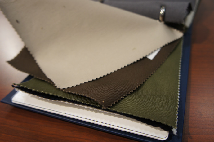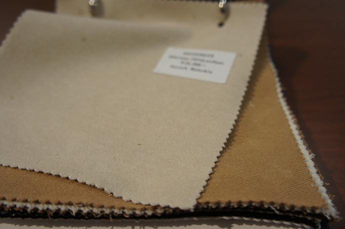 厚手のモールスキンストレッチに深いスエード起毛を施し、毛足をカットして揃えることで肉厚ながらもしなやかな風合いと滑らかなタッチ、上質な表面感を併せ持った素材です。