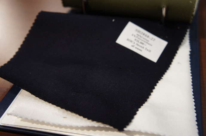 高密度コットンにポリウレタンを混紡しストレッチによる快適性も加えた素材です。ハリがありしっかりとした風合いでありながら、快適な1本に仕上がります。
