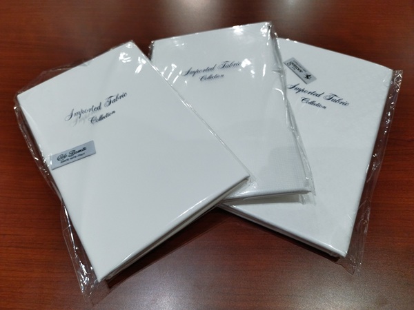 インポート生地も使いやすい白、サックスブルーを中心に上質で肌触りが滑らかな生地を多くご用意しております。