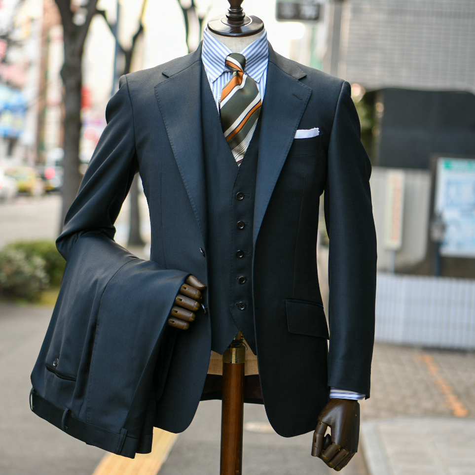 今回はWORLD TRAVELER TIME のhigh twistのライトグレーでピークドラペルのスーツをご注文くださいました。