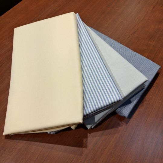 大きく分けてロイヤルオックス、ピンオックス等が他にありますが、オーダーシャツフェア期間は多種多様なオックスが揃います。