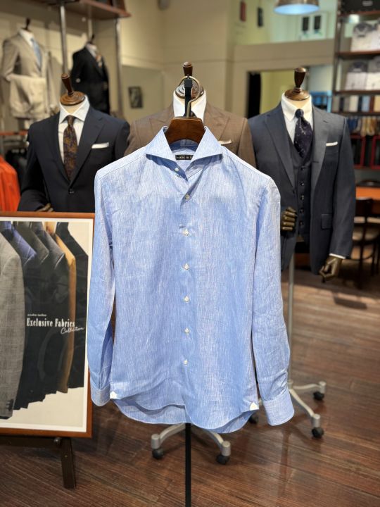 毎シーズン夏物のシャツ生地で即完する生地がございまして、それが【麻素材】です。