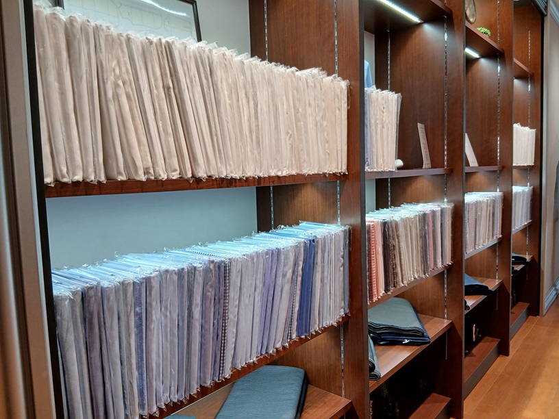 麻布テーラーではシーズンごとに3000種を超える生地サンプルをご用意して生地選びのお手伝いを致します。麻布テーラーの生地について詳しくは ⇒ こちら