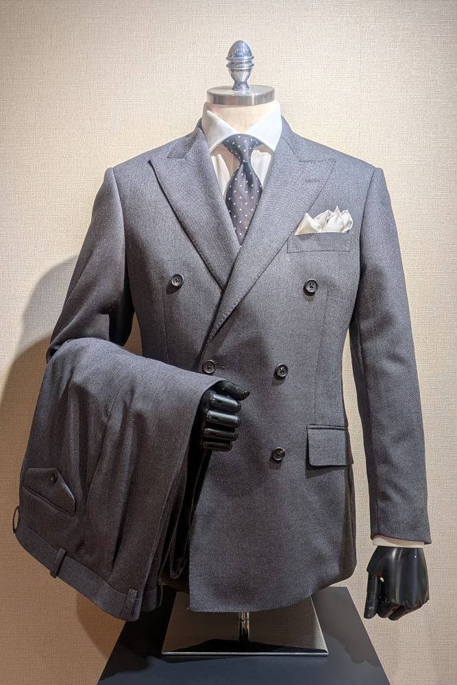 ダブルスーツはイギリス軍の士官が着ていた外套(オーバーコート)や乗馬用の服が起源と言われています。その為、屋内着をルーツに持つスリーピースより、重厚感が強めです。