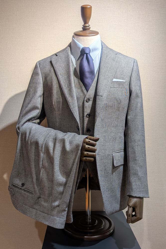サイズ感に合わせて上衣丈や袖丈、パンツの股上・股下・裾幅など細部にこだわり調整することで、バランスの良いお洒落なスーツがお召しいただけます。