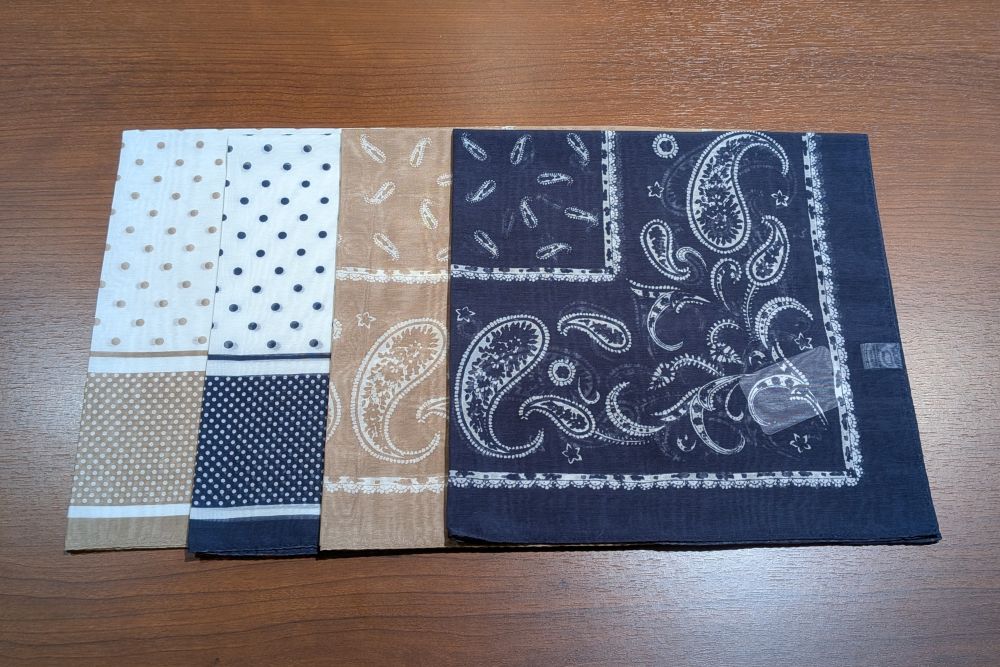 絶妙なサイズ感で、ネッカチーフにもポケットチーフにも使用可能です。