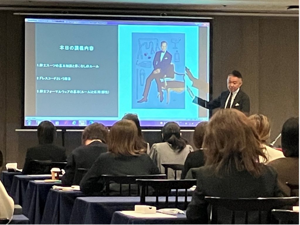 先日、日本フォーマル協会の検定1級講座の講師を務めるという、毎年トップクラスに緊張するお仕事がありました。40人を超える受講者の、99%がフォーマルに係わるお仕事をされているプロで、麻布テーラーの店長も数名参加しています。プロに教えるという事は、私はそれ以上にプロに徹しないとならないので、それなりに準備に時間を割きます。フォーマルの奥深さと難しさを改めて知ることで、自分自身も勉強にもなっています。