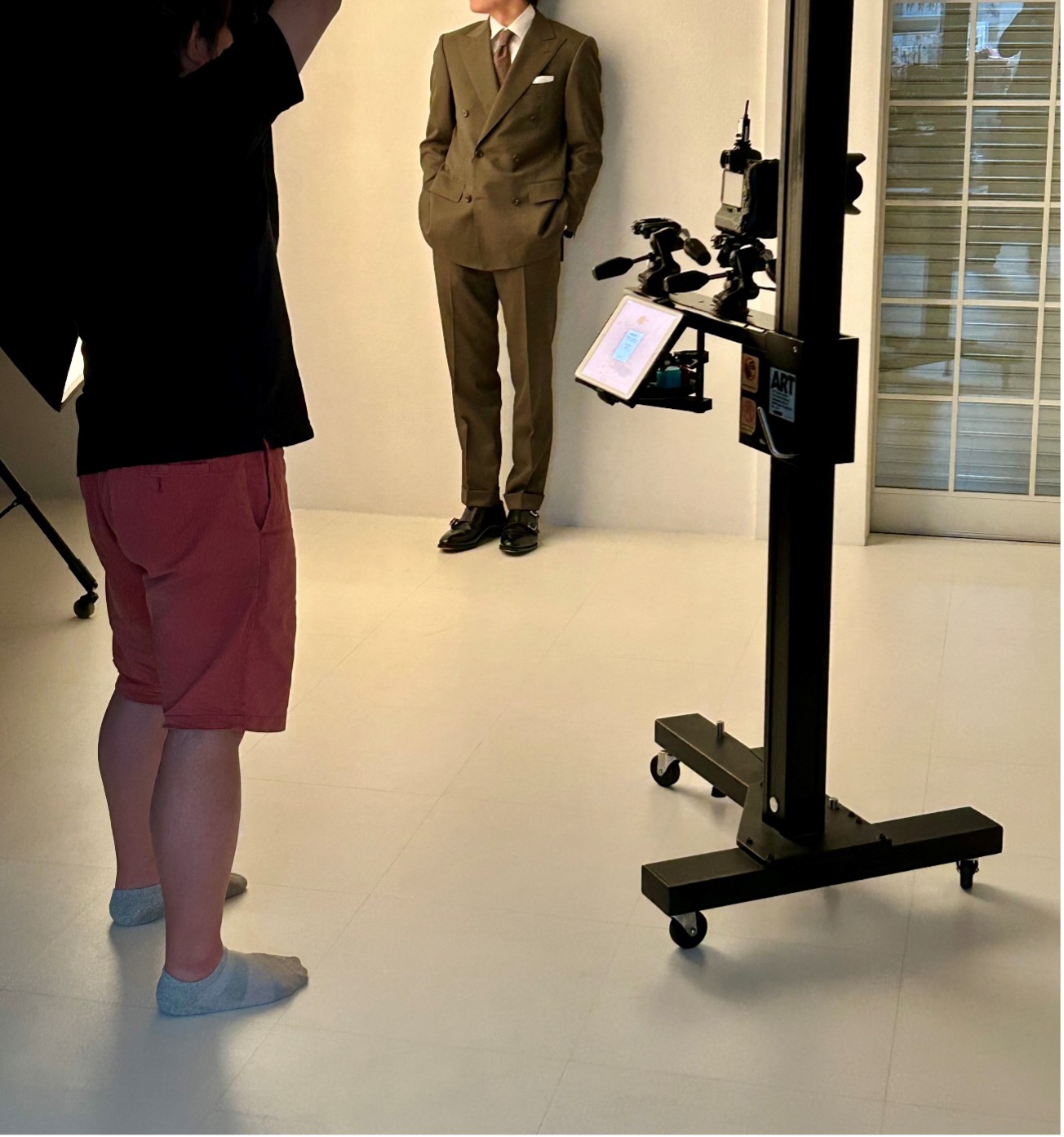 実は昨年、うちの息子も成人式で麻布テーラーのスーツを仕立てました。そのとき彼が選んだのが、オリーブグリーンのダブルスーツ。完全に私のDNAを受け継いでいます(苦笑)。“メジャーじゃなくてマイナーを選ぶ”あの性格。ネイビー・グレー・ブラックという3大メジャー色をスルー、シングルや3ピースをスルーしてダブル。あれを見て、「やっぱり上月家の血は避けられんのだな。。。」と妻が一言。 息子の承認を得て、成人式スーツ撮影の様子を。私も含めた家族写真を撮ったのですが、カメラマンさんに「お父さんポーズが慣れていますが、何をされている方?」と(汗)。
