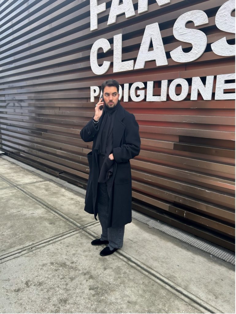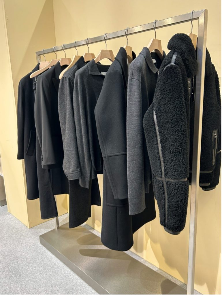 しかし今年は、そのブラウンの海の中に、はっきりと“モノトーン”が浮かび上がっていました。ブラウンの中のブラックは、逆に新鮮に映ります。ブラウンの柔らかさに慣れた目には、モノトーンのキレが全体のスタイルを引き締め、クラシックの枠を少しだけモードへ押し広げるような存在感を感じました。