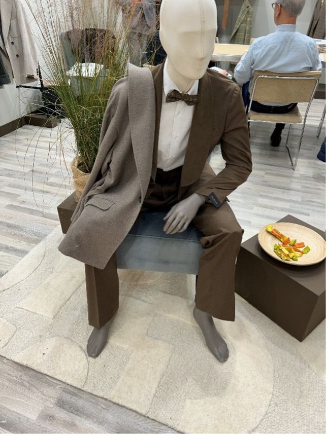 会場を歩き始めてまず感じたのは、ここ数年続いてきた“ブラウンの時代”に、ようやく変化の兆しが見えたことです。もちろんブラウンは依然として強いのは変わりありません。温かみのあるトーンは、スーツだけではなく、コートにもジャケットにもパンツにも、そしてフォーマルにまで浸透しています。クラシックの世界において、ブラウンはもはや揺るぎない存在になりました。