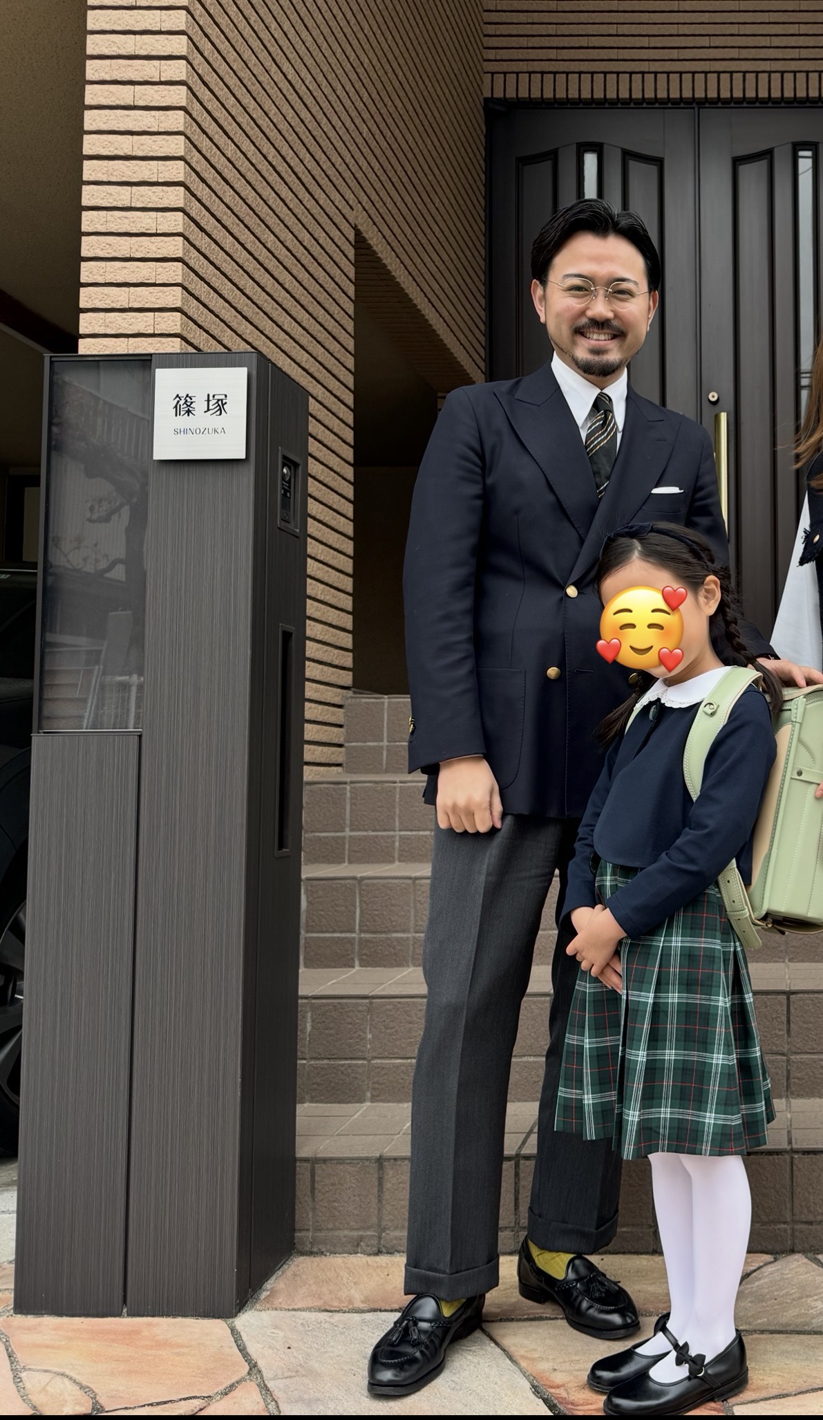 一方、小学校はそこまで重くなくていい。むしろ「軽やかさ」が必要です。 そこで選んだのはブレザー。ただし、シングルだと「保護者参観」感が強くなるので、あえてダブルブレストを選びました。これだけで、不思議とパパとしての品格(ハッタリとも言う)が足されます。 ネクタイはまたしてもグリーン。娘が緑好きなので、親も寄せる。