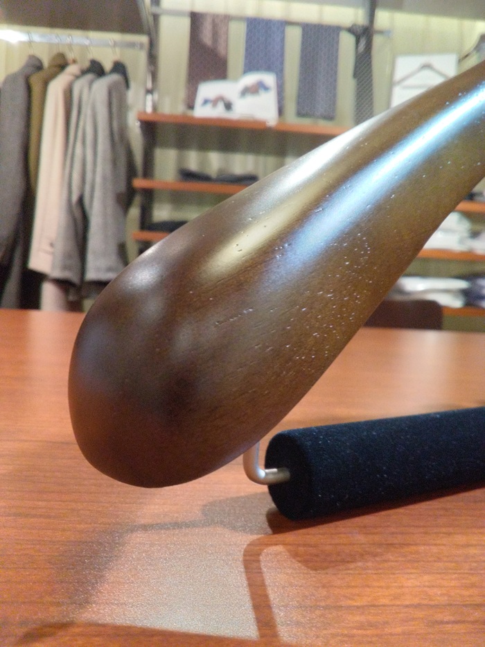 肩回りも4.5cmの厚みがありジャケットの型崩れを防ぎつつも、程良い厚みの為クローゼットの中で嵩張り過ぎずスマートに収納出来ます。