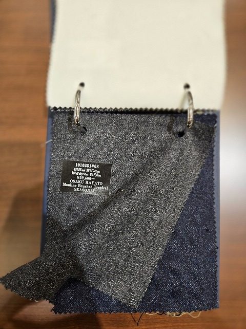 ・特徴:軽やかなトロピカルウールに、秋冬らしい起毛加工(ブラッシュド)を施したハイブリッドな素材。