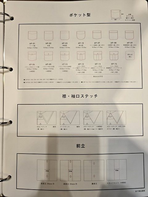 その他:ポケットの有無、ステッチカラーの指定など、細かなカスタマイズが可能です。