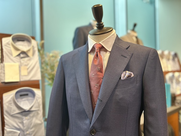 落ち着きと品格を感じさせるグレー、そして深みのあるブルーは、ビジネスシーンはもちろん、大切な商談や特別な場面でも存在感を放つ一着に仕上がります。