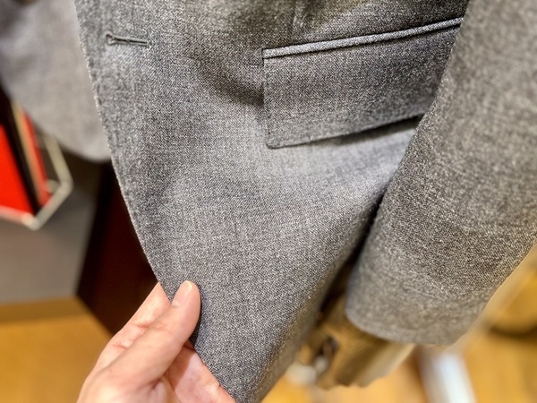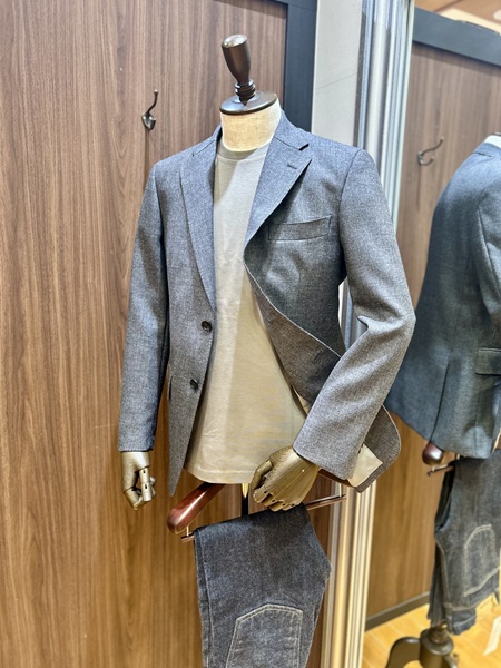 先程のMARLING&EVANSのような固くて重たいものより、サラッと着れるスーツが良い!という方にとてもぴったりな質感となります。