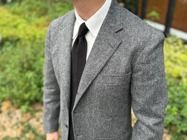 仕立てのこだわりとしては英国製のしっかりとした生地感に今麻布テーラーいち押しの Light Comfort という仕立てでイタリア風に軽やかに仕上げたことです。