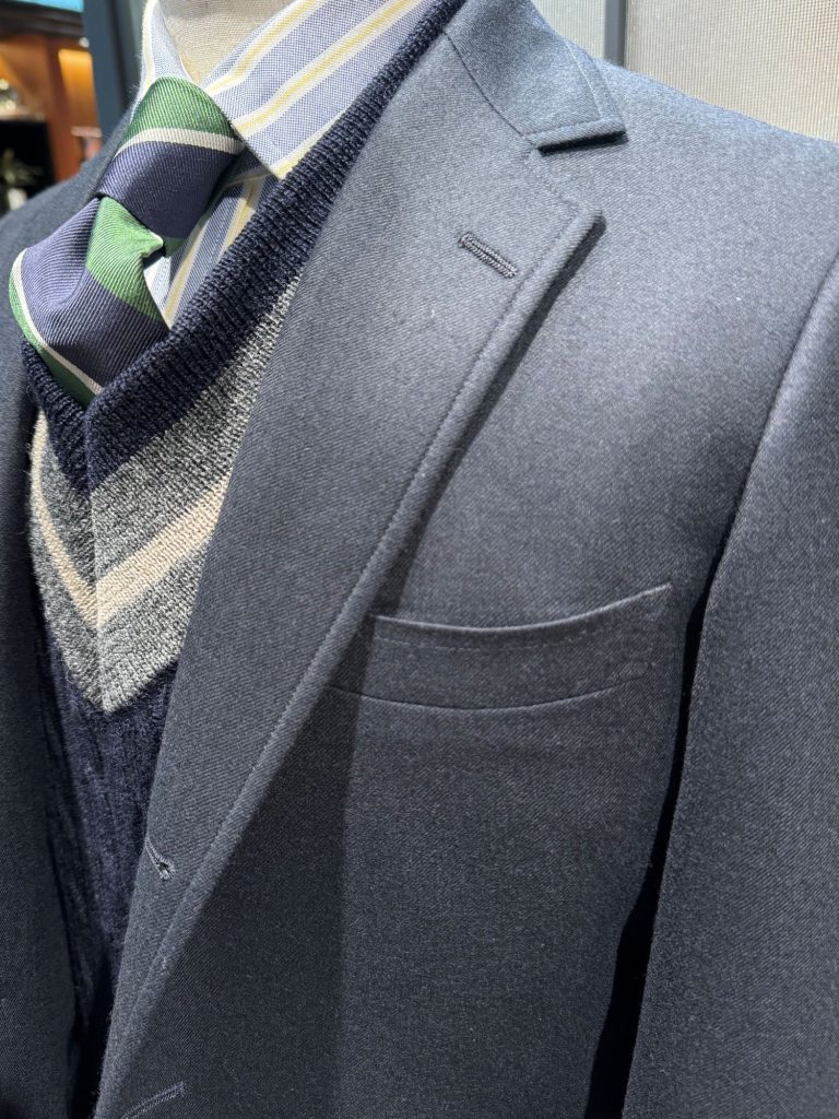 ジャケットはアイビーの基本を押さえつつ、よりスーツらしいフラップポケットに。