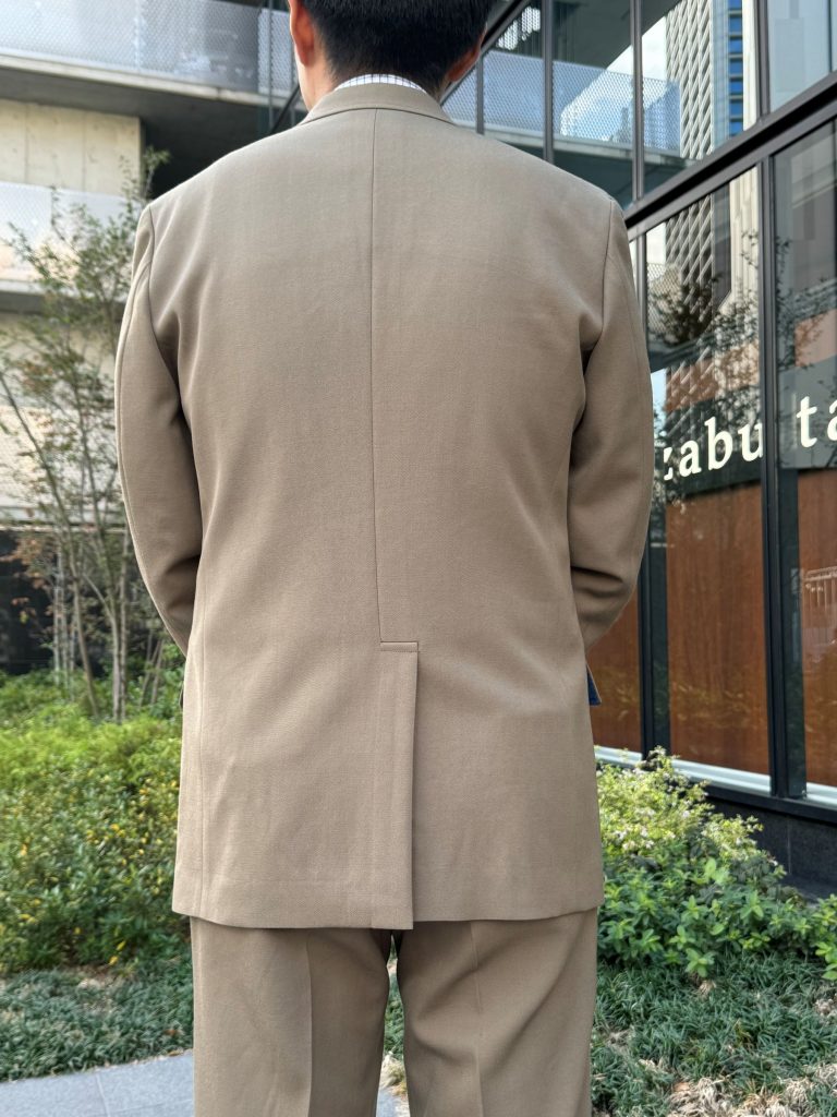 裾仕上げは強度の高めたフックベント。後ろ姿も非常にアイコニックです。