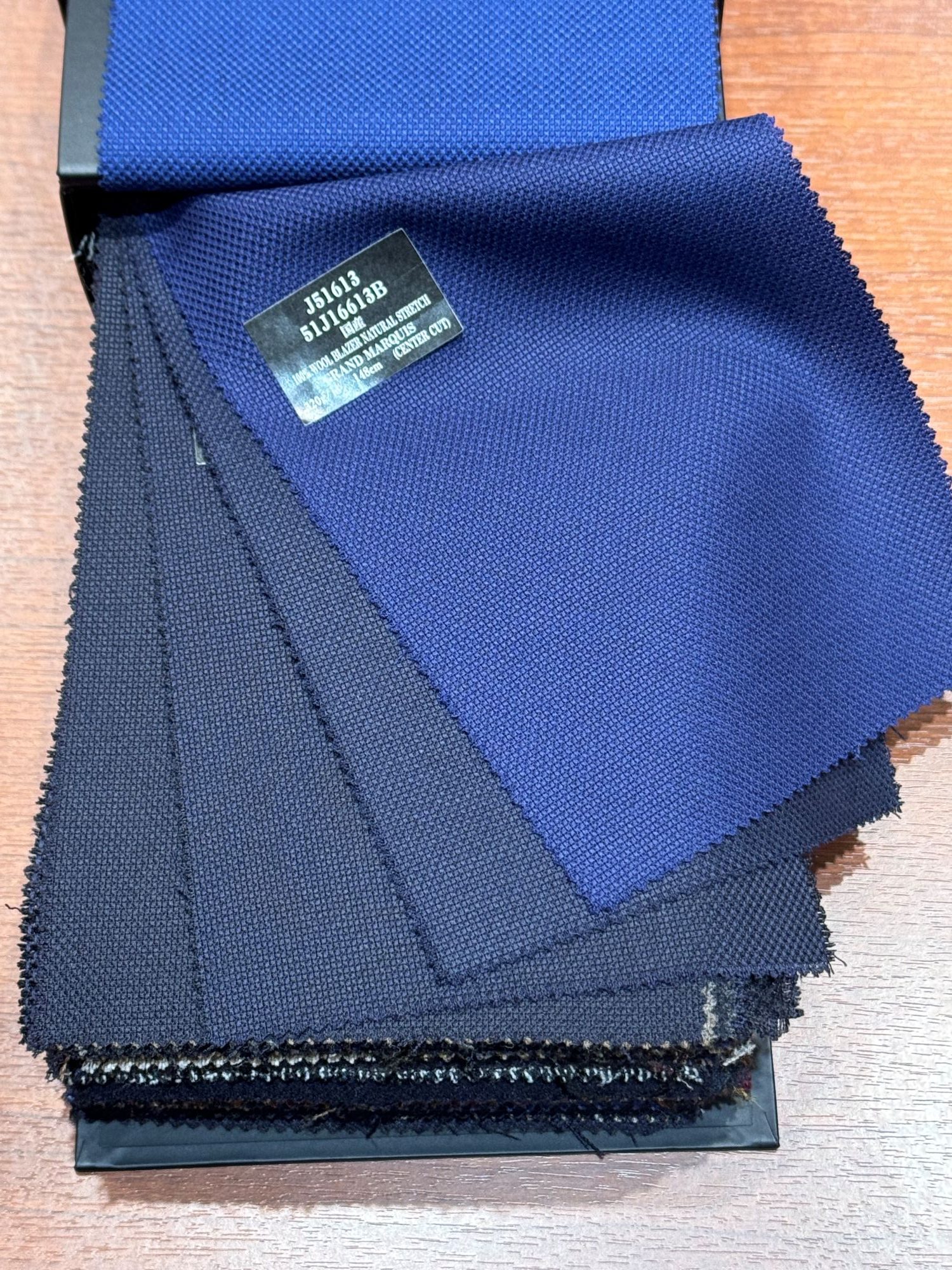紺生地も様々ですが、ブレザー生地としては「ホップサック」が今の定番です。