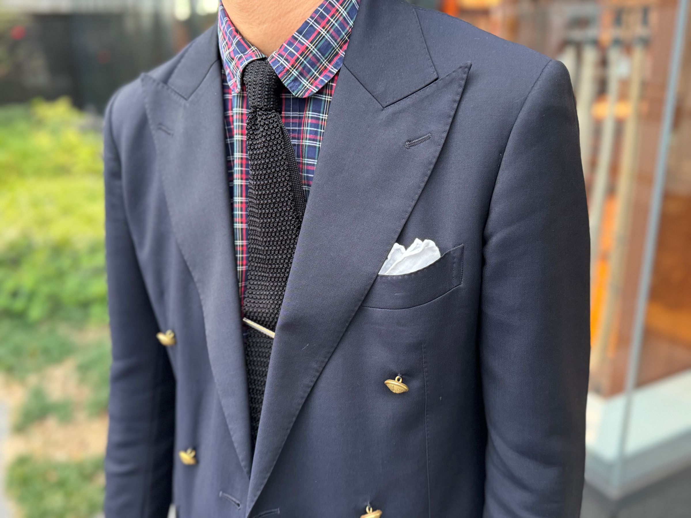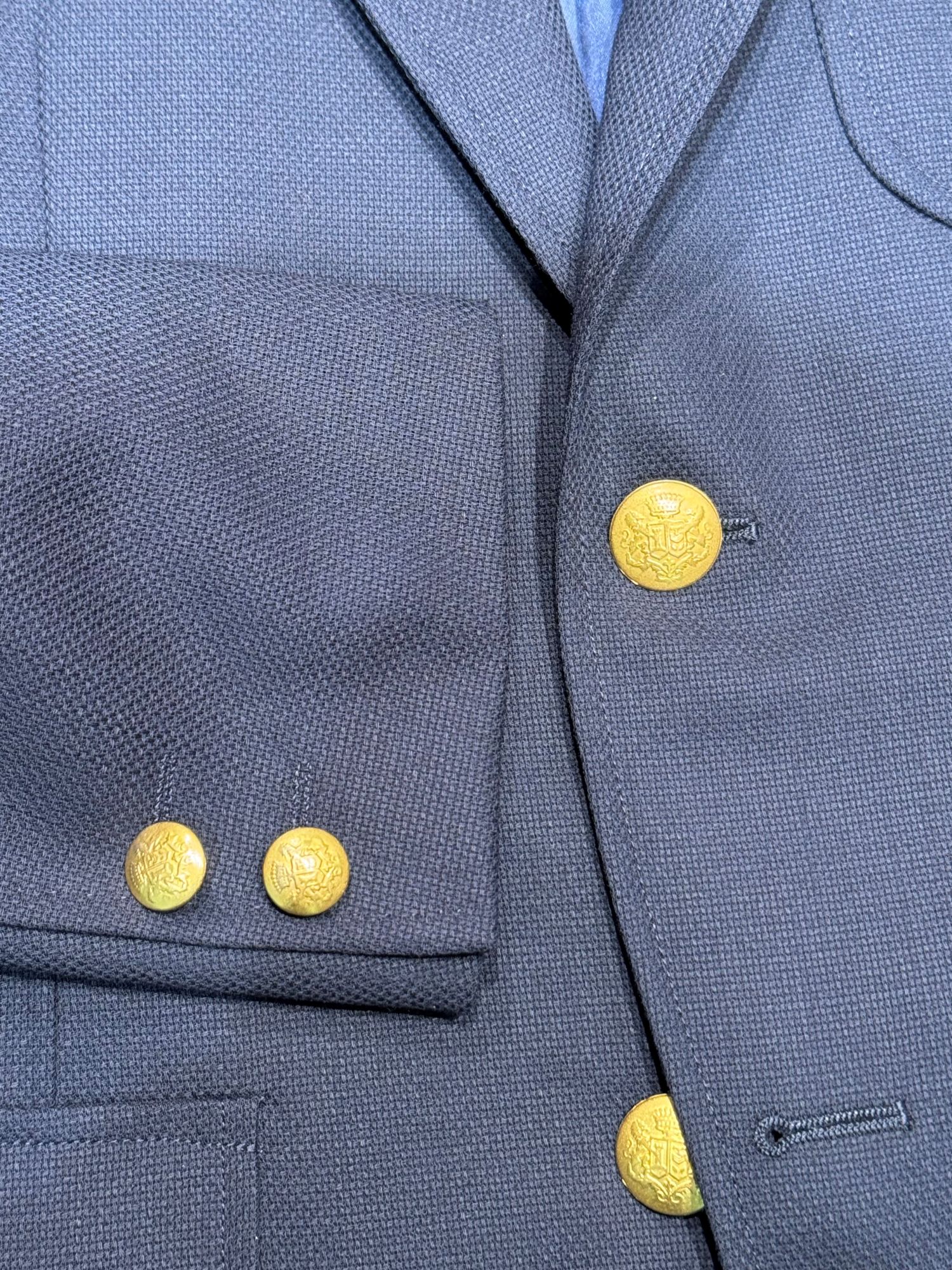 やはりブレザーといえば紺生地にメタルボタンの組み合わせを