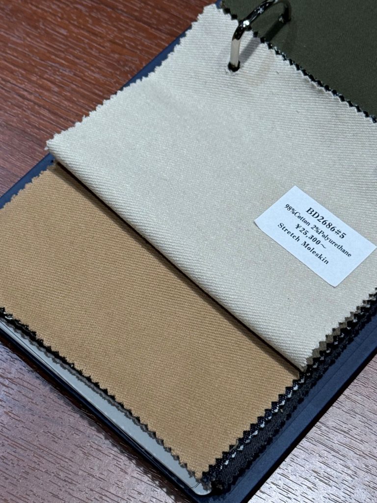 ストレッチ性のあるモールスキン素材など、季節感ある生地もご用意。