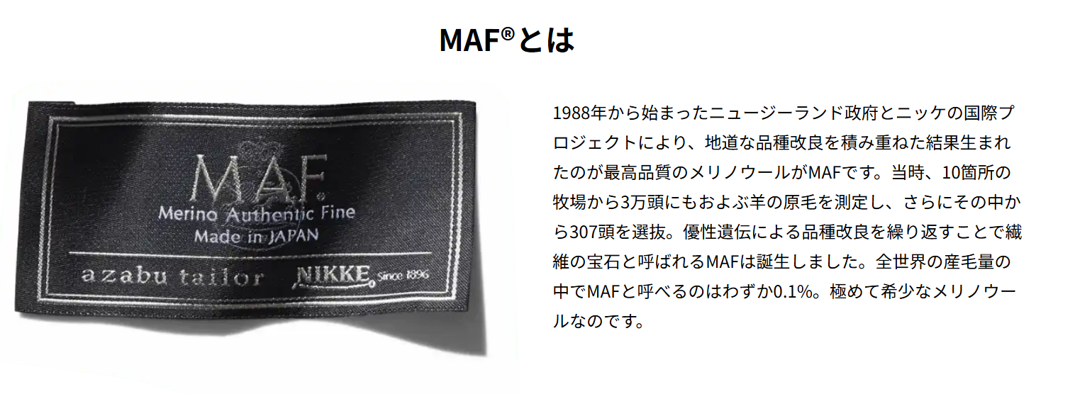 こちらMAFの生地で仕立てたスーツは適度な伸縮性とハリ感が