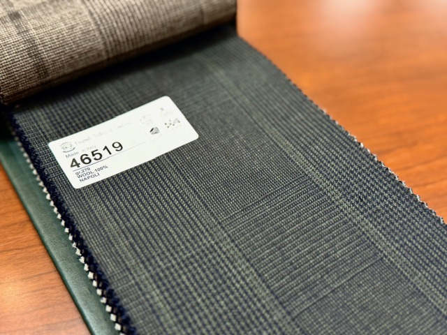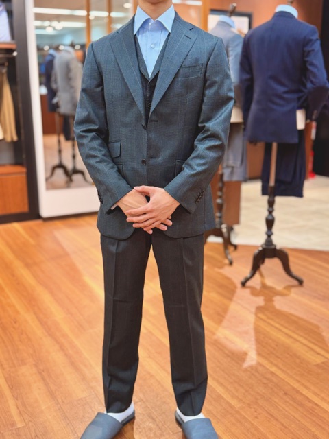 今回は、イタリアの3大生地ブランドの1つでもあるFRATELLI TALLIA DI DELFINONAPOLIでスリーピーススーツをご注文いただきました。