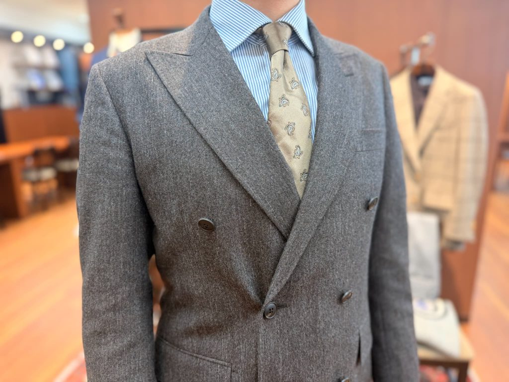 それでも、Carlo Barberaらしい柔らかさと艶、そしてツイード特有の温かみを両立したこの生地は、「いつかは仕立てたい!」と思える理想の一着でした。