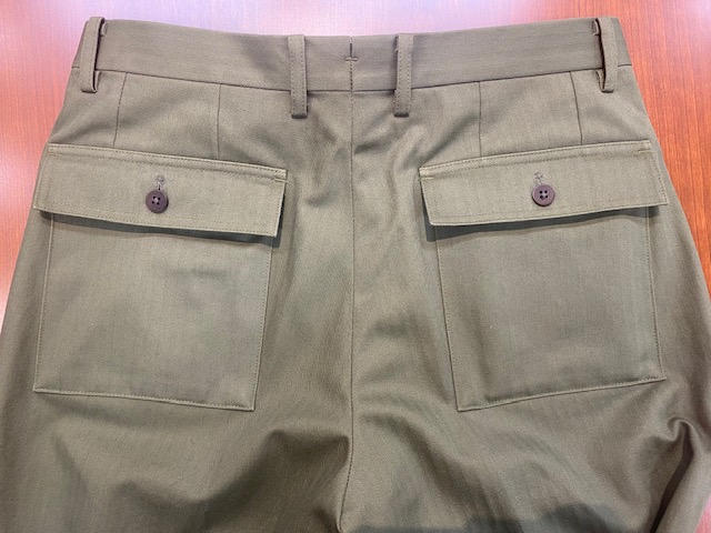 程よくミリタリー要素もありつつ、美しいシルエットに仕上げたドレスベイカーパンツを是非ご検討ください。