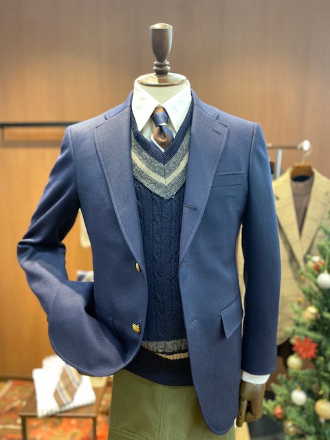 ネイビーのジャケットはお持ちの方も多いですが、そんなネイビージャケットを冬Ver.にアップデートされてみてはいかがでしょうか。ブレザー生地はたくさんありますが、その中から今回は麻布テーラーセレクトのコストパフォーマンスに優れた国産生地。