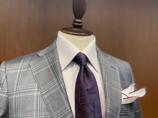 襟型に迷ってしまう方、多いと思います。着用シーンに合わせるだけでなく、お持ちのジャケットのゴージラインとシャツの襟の開きが平行に近い襟型を選択されますと襟元がすっきり見えてバランスが良く見えたりします。