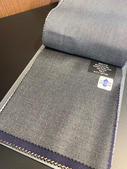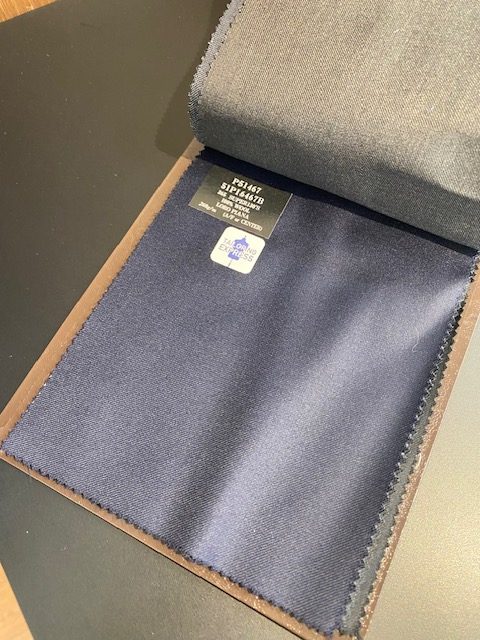 生地はDORMEUILのAMADEUS365。厳選されたSuper100’sの原毛を使用し、英国独特のしっかりとした打ち込みで重厚な光沢があります。