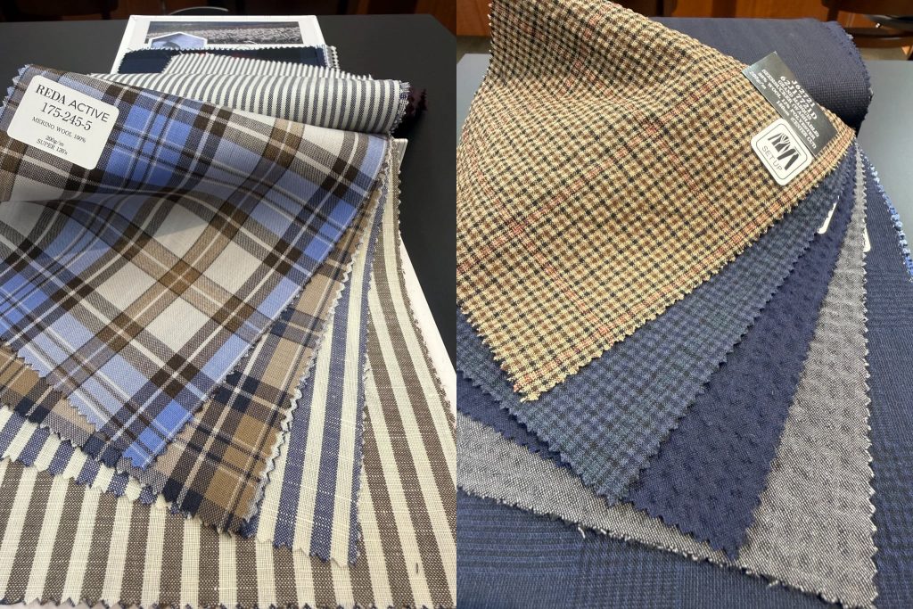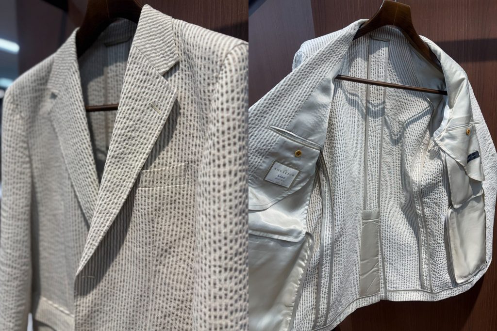 みなとみらい店では、シアサッカー素材のエアジャケット仕立てのサンプルもご用意しておりますので、ぜひ参考にご覧下さい。
