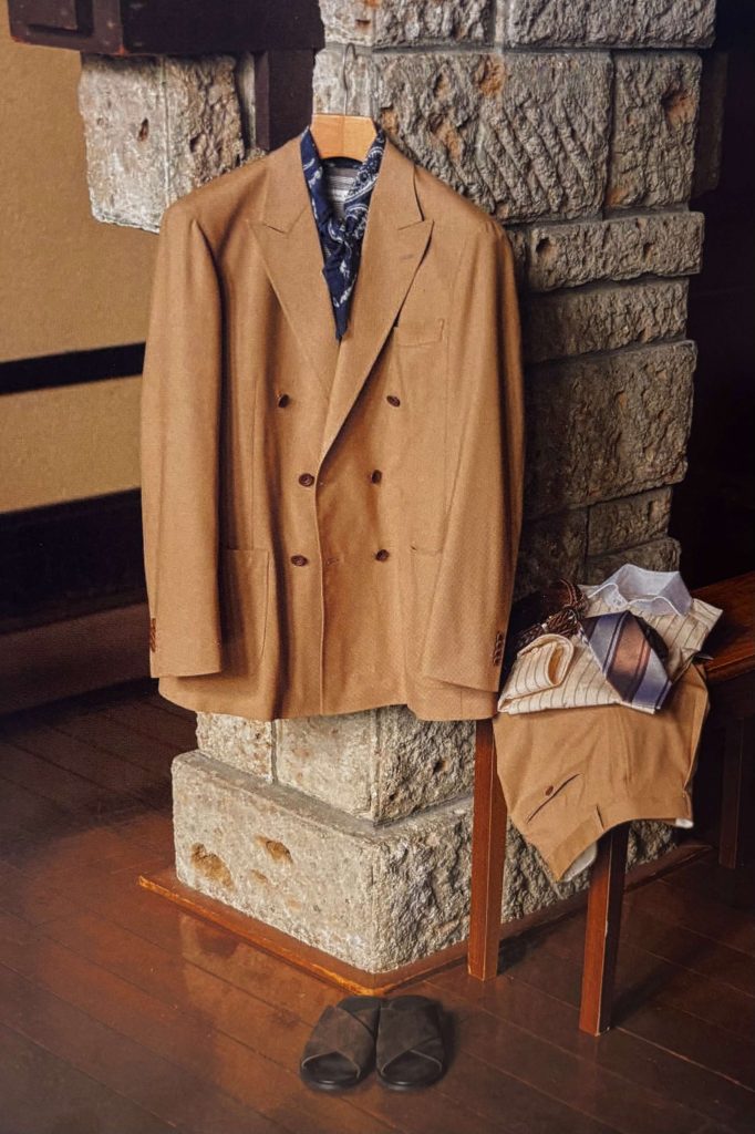 タイドアップの着こなしは勿論Tシャツなど、オンオフを自由に行き来する着こなしが麻布テーラー