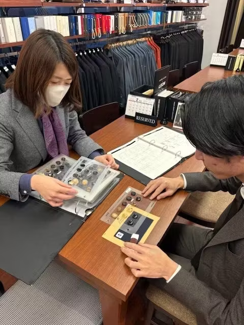 まずはじめに、用途やお好みのスタイルなどお聞きしながら仕立てるスーツのイメージを固めていきます。