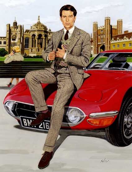また、毎シーズン綿谷画伯に描いていただいている麻布テーラーのシーズンイラストでは、今期はホームスパンのセットアップが登場。少しカントリーテイストの雰囲気ですが、ダーツ無しブレザーはこうしたホームスパン調のセットアップとも相性抜群です。