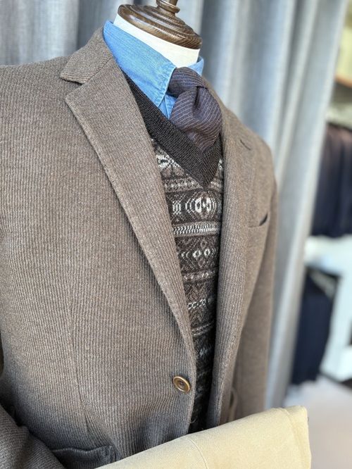 最近ではフランネルスーツの下に合わせるスタイルまで幅広くコーディネートができます。